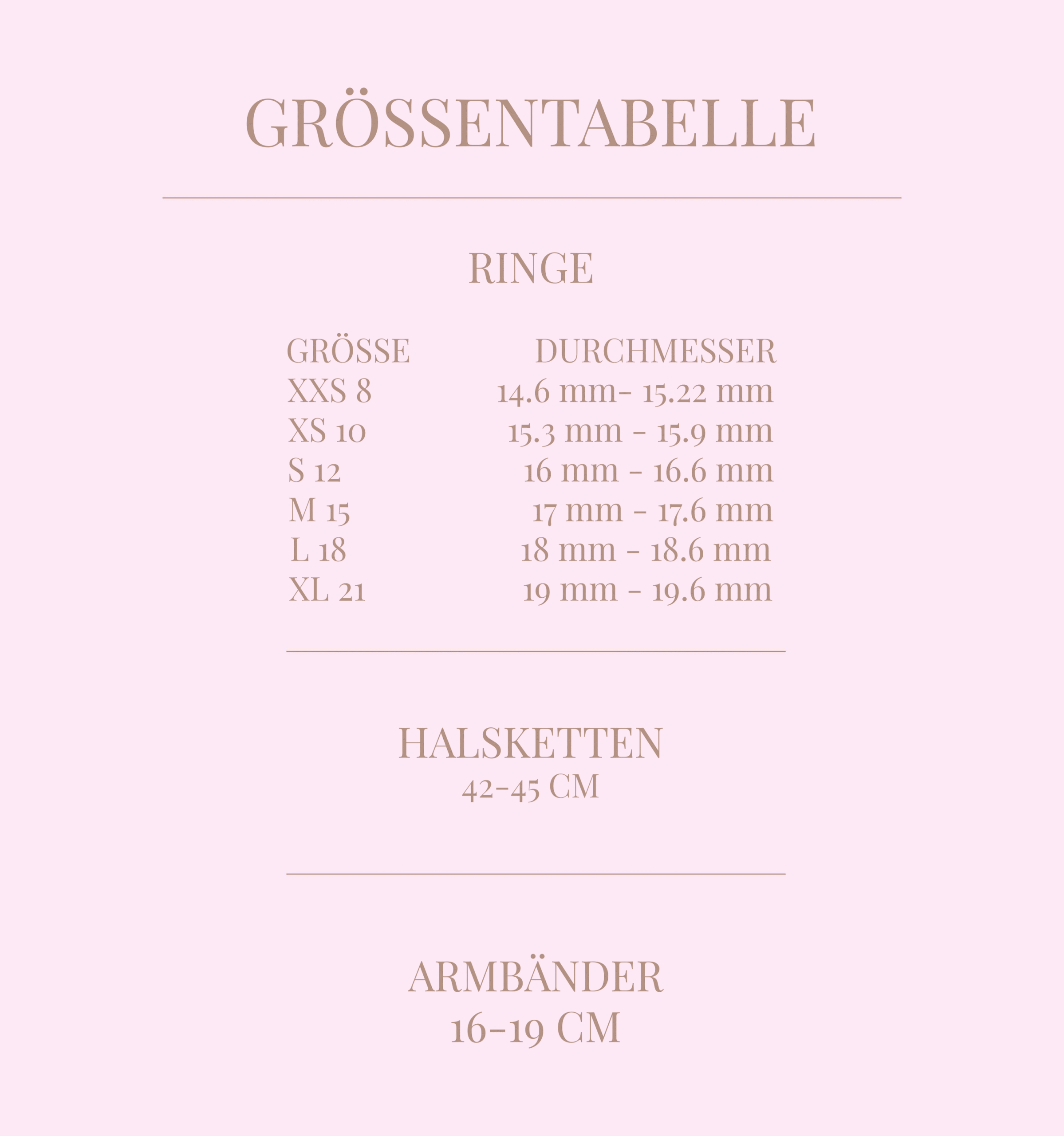 Bitte sieh dir unsere Größentabelle für Schmuck an: